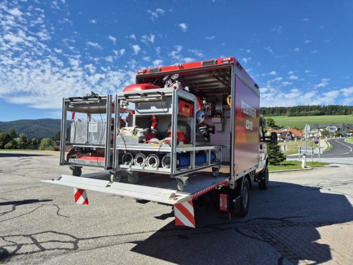 Ausrüstung: Hebebühne, LED-Lichtmast, Rollcontainer-Tragkraftspritze mit Rosenbauer FOX III, Rollcontainer-KLF mit Wasserführenden Armaturen und gerollten Druckschläuchen, Rollcontainer-Schlauch mit 400m gefalteten B-Druckschläuchen, Rollcontainer-Wasserschaden mit Tauchpumpen und Nasssauger, Faltbehälter 5000l, Motorkettensäge, Schanzwerkzeug und weitere Fahrzeugspezifische Ausrüstung