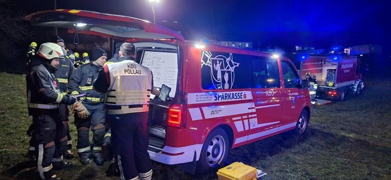 Sofort wurden weitere Einsatzkräfte aus dem Abschnitten Oberes Feistritztal und Anger, sowie aus dem angrenzenden Bereichsfeuerwehrverband Hartberg zur abgelegenen Einsatzstelle nachalarmiert. Besonders Tanklöschfahrzeuge und Fahrzeuge, welche mit Atemschutzgeräten ausgestattet sind, waren gefragt.