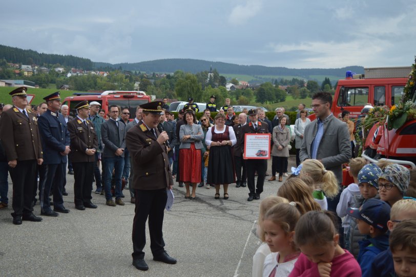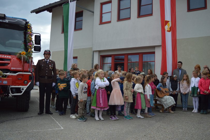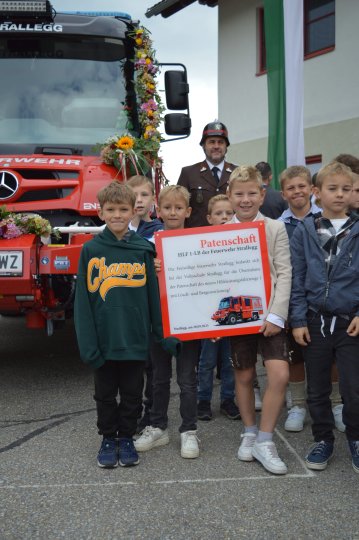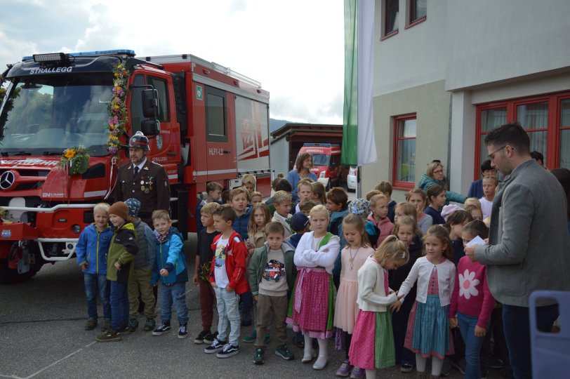 Pfarrer Mag. Roman Miesebner führte die feierliche Fahrzeugsegnung durch, die vom Musikverein Strallegg musikalisch umrahmt wurde. Die Kinder der Volksschule Strallegg gestalteten den festlichen Vormittag mit einstudierten Liedern und übernahmen im Anschluss die Patenschaft für unser neues Fahrzeug.