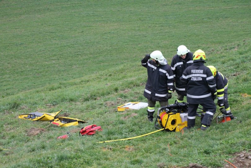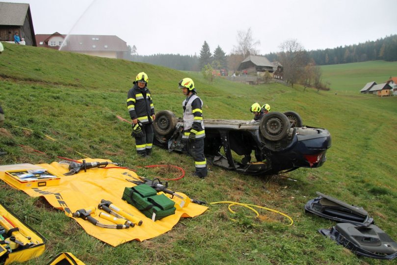 Übungsannahme war ein Brand im Garagenbereich eines Landwirtschaftlichen Betriebes, wobei zwei Atemschutztrupps je eine Menschenrettung im verrauchten Gebäudetrakt durchführen mussten. Um die Wasserversorgung sicherzustellen, wurde eine Zubringerleitung von einem rund 600 Meter entfernten Löschwasserbehälter verlegt. Damit auch die technischen Geräte beüben werden, galt es zusätzlich einen Verkehrsunfall mit einer eingeklemmten Person und eine Menschenrettung vom 1.OG eines Gebäudes abzuarbeiten. Es wurde auch die Lageführung im Rahmen einer Einsatzleitung beübt, wobei fiktiv ein Einsatz von mehreren Feuerwehren angenommen wurde.