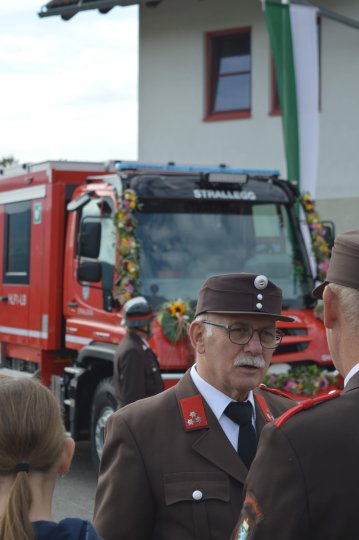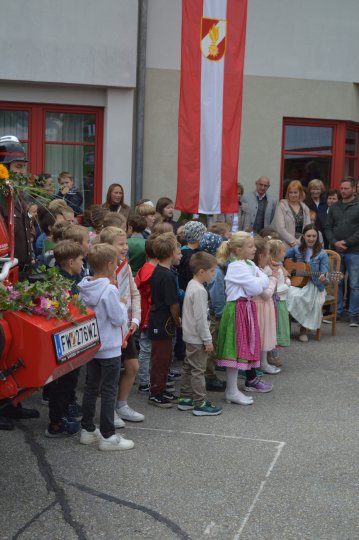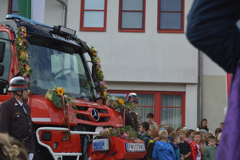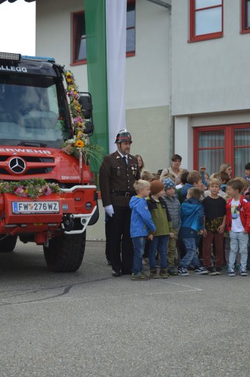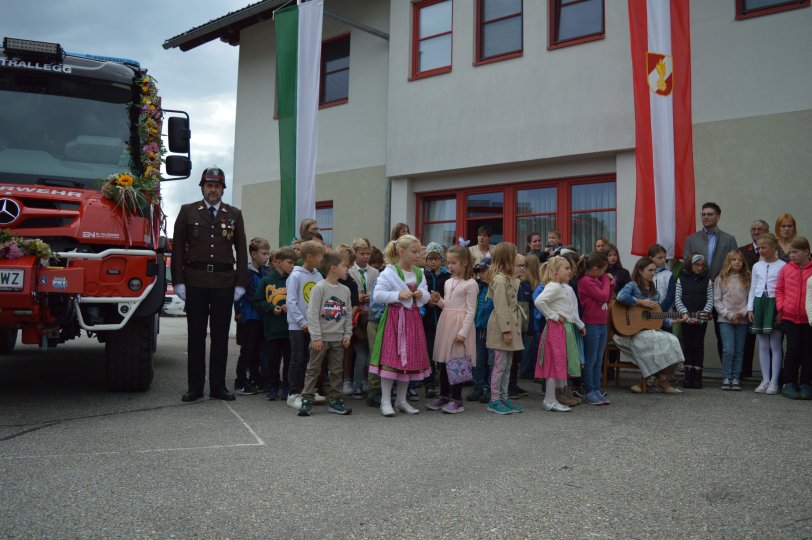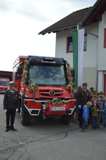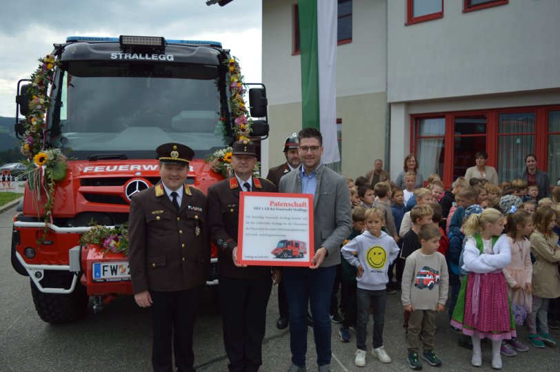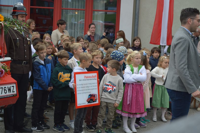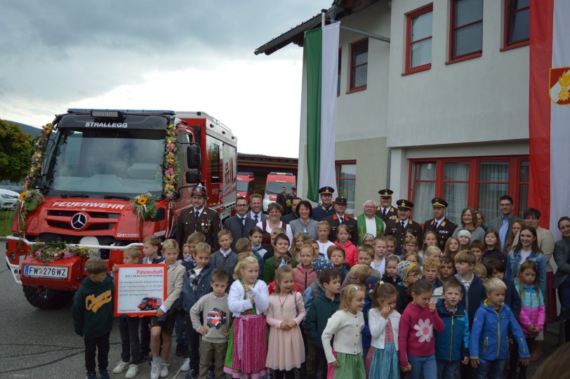Pfarrer Mag. Roman Miesebner führte die feierliche Fahrzeugsegnung durch, die vom Musikverein Strallegg musikalisch umrahmt wurde. Die Kinder der Volksschule Strallegg gestalteten den festlichen Vormittag mit einstudierten Liedern und übernahmen im Anschluss die Patenschaft für unser neues Fahrzeug.