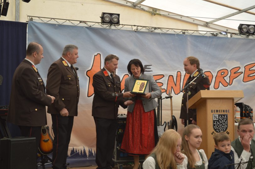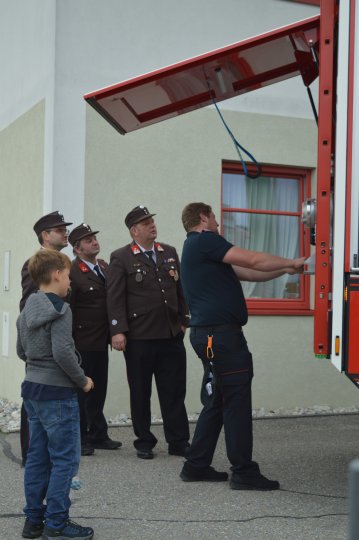 Nach Abschluss des Festaktes konnte das Fahrzeug besichtigt werden, bevor vom formellen Programm in den Frühschoppen mit einer musikalischen Darbietung der „Hafendorfer“ übergeleitet wurde. Auch eine Feuerwehr-Hüpfburg für die kleinen Besucher fehlte dabei nicht.