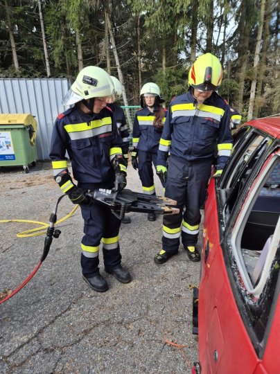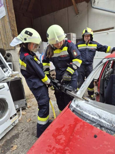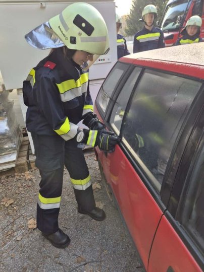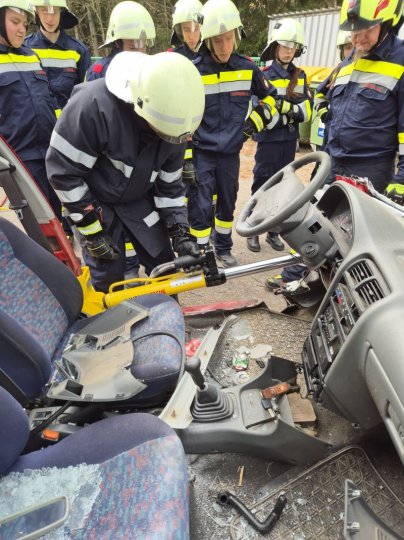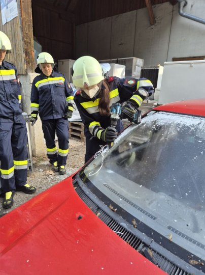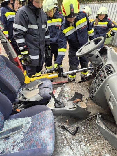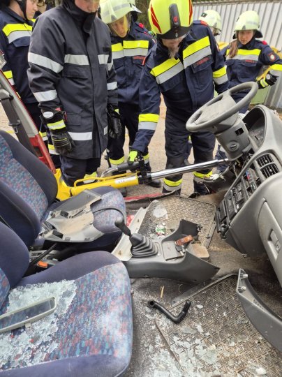 Übungsziel war es, einen technischen Einsatz mit Menschenrettung aus einem Fahrzeug zu beüben und die Gerätschaften zur technischen Menschrettung allen voran Hydraulisches Rettungsgerät mit Spreizer und Schere zu bedienen. Mit viel Selbstvertrauen und Courage wurde das Fahrzeug bis zum Schluss in seine Einzelteile zerlegt, um allen die Möglichkeit zu geben sich an die Gerätschaften und deren Arbeitsweise zu gewöhnen.