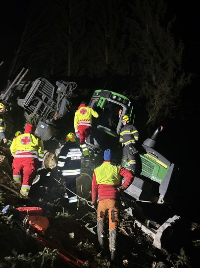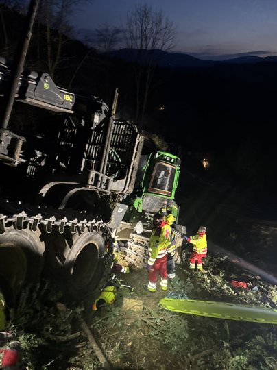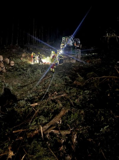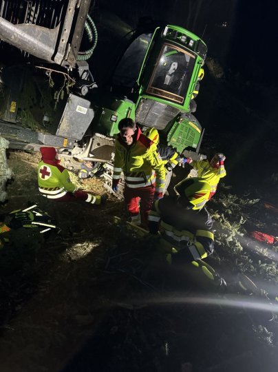 Übungsannahme: Forstunfall mit Forwarder im steilen Gelände